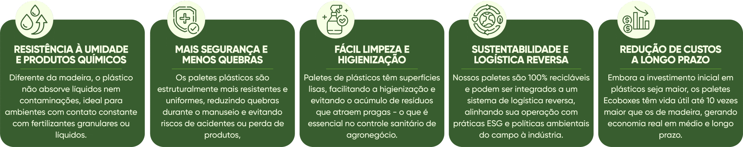 Os paletes plásticos da Ecoboxes foram desenvolvidos para resolver os principais desafios do setor agroindustrial, garantindo mais performance, segurança sanitária e redução de custos a longo prazo.