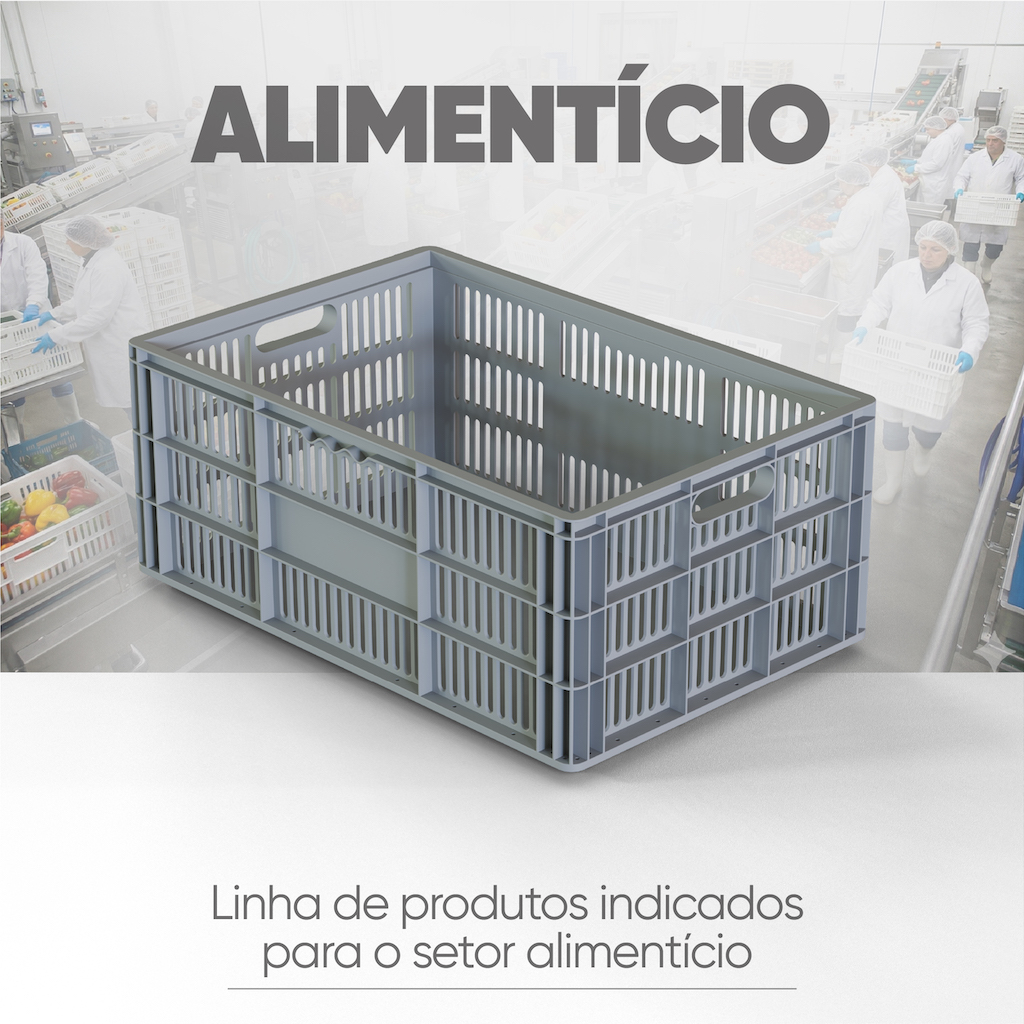 Com as caixas PRÁTIKA a eficiência é garantida através de versões vazadas que facilitam a ventilação e higienização, além de otimizar o armazenamento com um design empilhável funcional, ideal para a indústria de alimentos.
