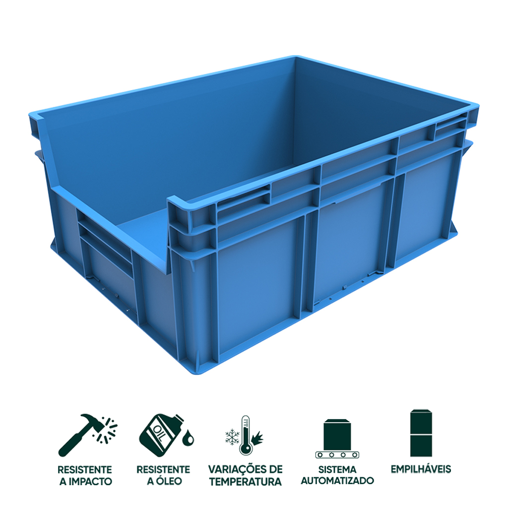 - Racionaliza manuseio - Contorno interno totalmente liso - Facilita carga/descarga automatizada do conteúdo - Possui local para porta etiquetas - Permite colocação de lacre quando utilizado com tampa - Fundo reforçado e light - Possibilita gravação de logo ou nome da empresa - Tampa opcional
