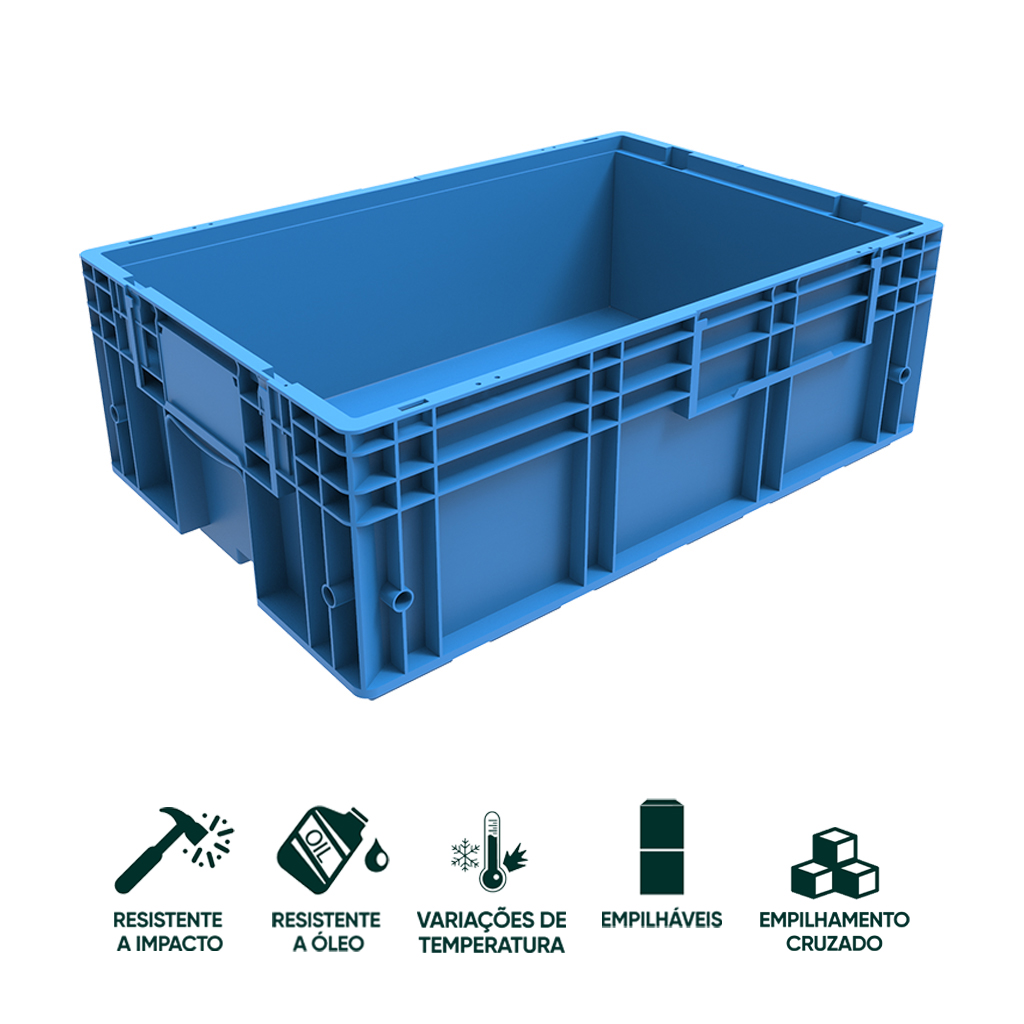 Desenvolvida conforme norma VDA 4500 automotiva, as caixas R-KLT possuem alta resistência e padronização. Foram projetadas para solucionar os principais problemas de transporte e armazenagem dos setores automotivos, farmacêutico e alimentício. Pode ser utilizada pela industria em geral.