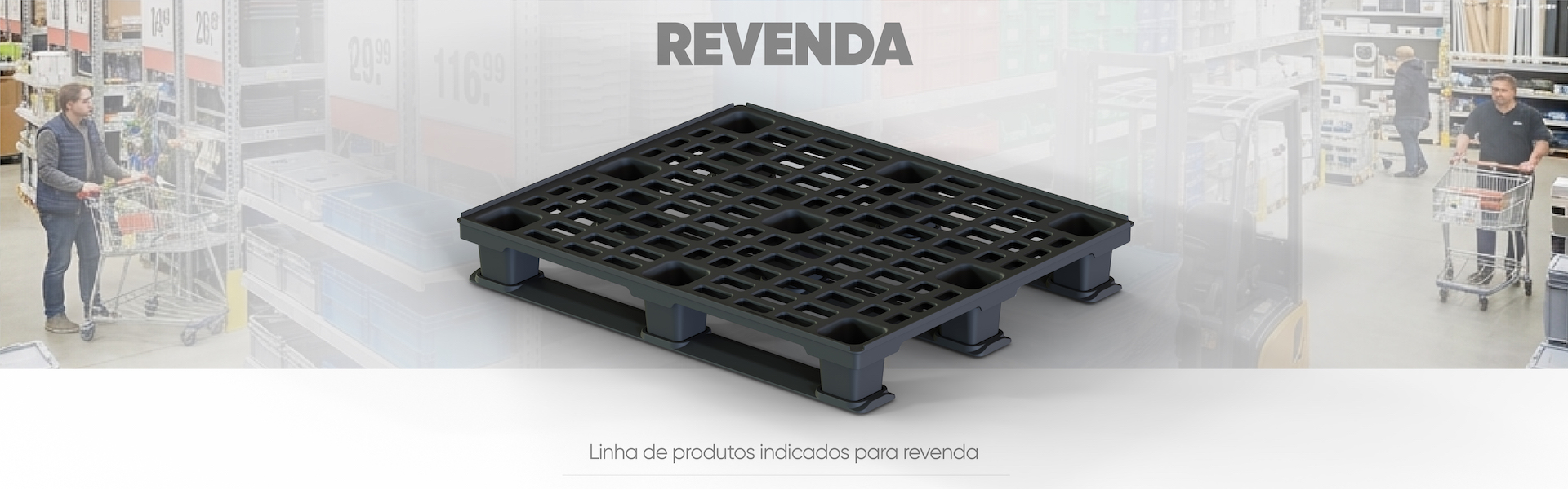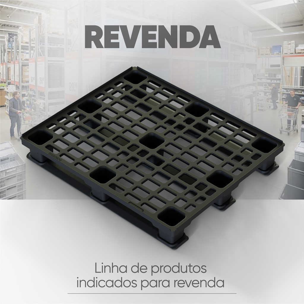 Com a linha PALLET a estabilidade é garantida através de seu design robusto, além de evitar deslizamentos com bordas de segurança, facilitando a organização por serem empilháveis, ideal para centros de distribuição.
